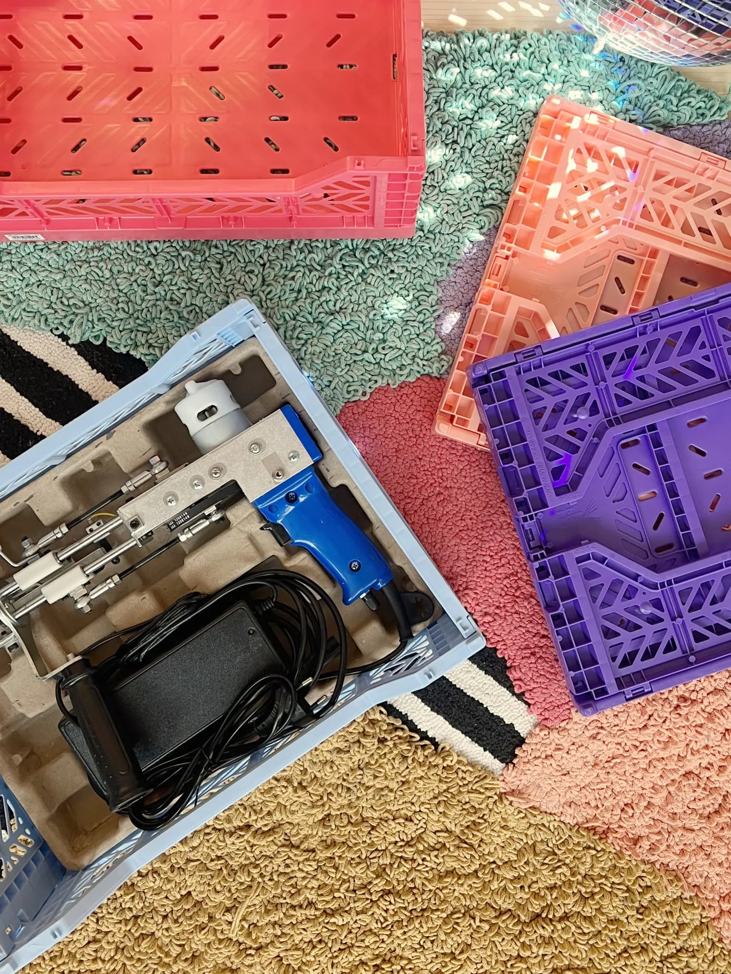 At Tuftinglove, we rely on the Aykasa Midi Folding Crate to store and transport our tufting machines and accessories. Its practical design and aesthetic appeal make it an indispensable part of our studio setup.